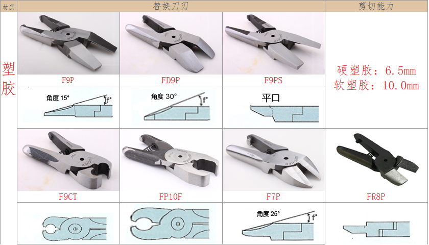 2.注意材質(zhì):材質(zhì)對選配刀刃非常重要,例如客戶要剪的銅鐵、材質(zhì)有鍍鈦、鍍烙、塑料材質(zhì)、加纖維超過20% 時,一般刀刃不是剪不斷,就是使用壽命大大減少,塑料還容易在剪斷過程中碎裂。在這情形S刀刃應(yīng)選擇Z刀,塑料則建議使用電熱剪。