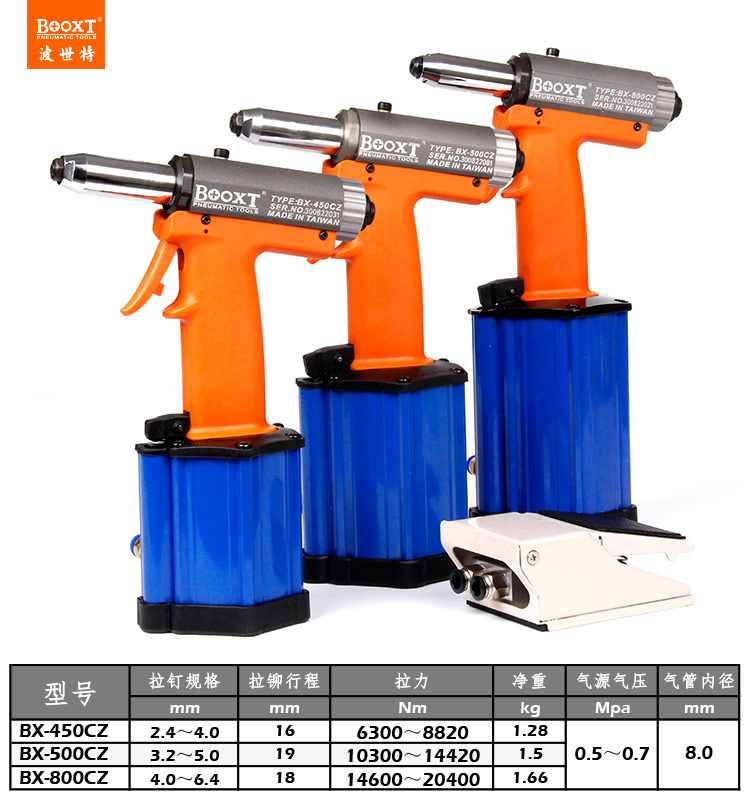 東莞市強(qiáng)勁五金工具有限公司提供臺灣BOOXT波世特品牌氣動工具,腳踏開關(guān)氣動拉釘槍BX-500CZ廠家直銷,首件享特價。咨詢熱線:4008301980