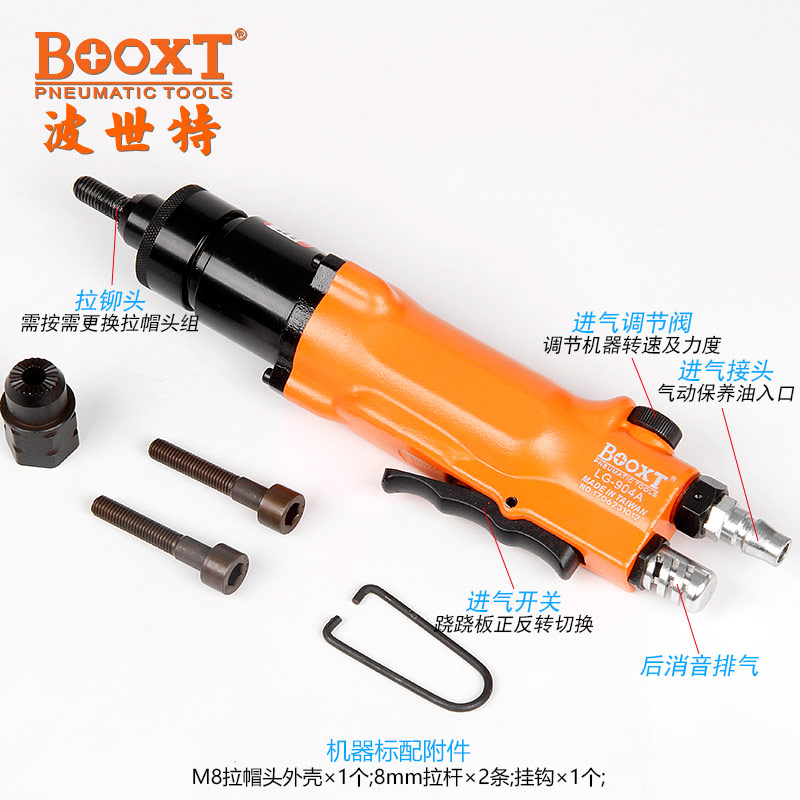 東莞市強(qiáng)勁五金工具有限公司提供臺灣BOOXT波世特品牌氣動工具,氣動拉螺帽槍LG-904A廠家直銷,首件享特價(jià)。咨詢熱線:4008301980