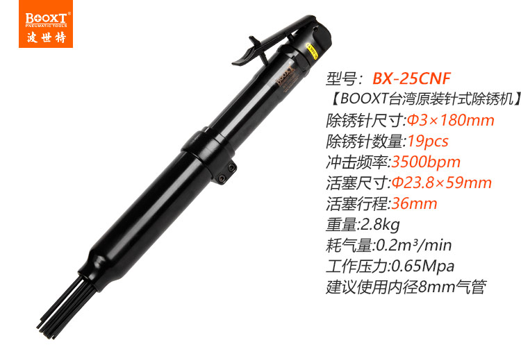 東莞市強(qiáng)勁五金工具提供臺(tái)灣BOOXT波世特品牌,氣動(dòng)除銹針槍BX-25CNF廠家直銷,首件享特價(jià)。咨詢熱線:4008301980
