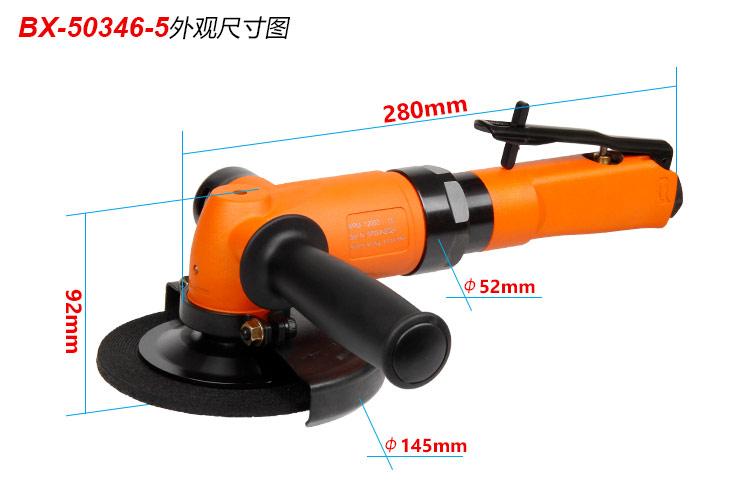 • 產(chǎn)品參數(shù): 砂輪尺寸:125*6*22.2mm (5寸) 馬達(dá)功率:1.6HP 空載轉(zhuǎn)速:12000rpm 耗 氣 量:1.2m3/min 工具全長:280mm 工具重量:2.0kg 噪 音 值:90db(A) 【工業(yè)型/大馬力/扳機(jī)開關(guān)】