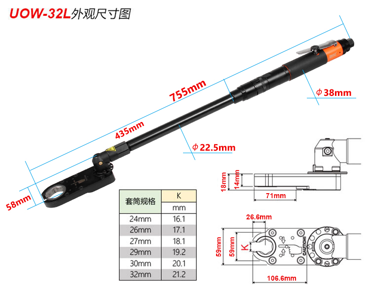 加長(zhǎng)型氣動(dòng)開(kāi)口扳手UOW-32L