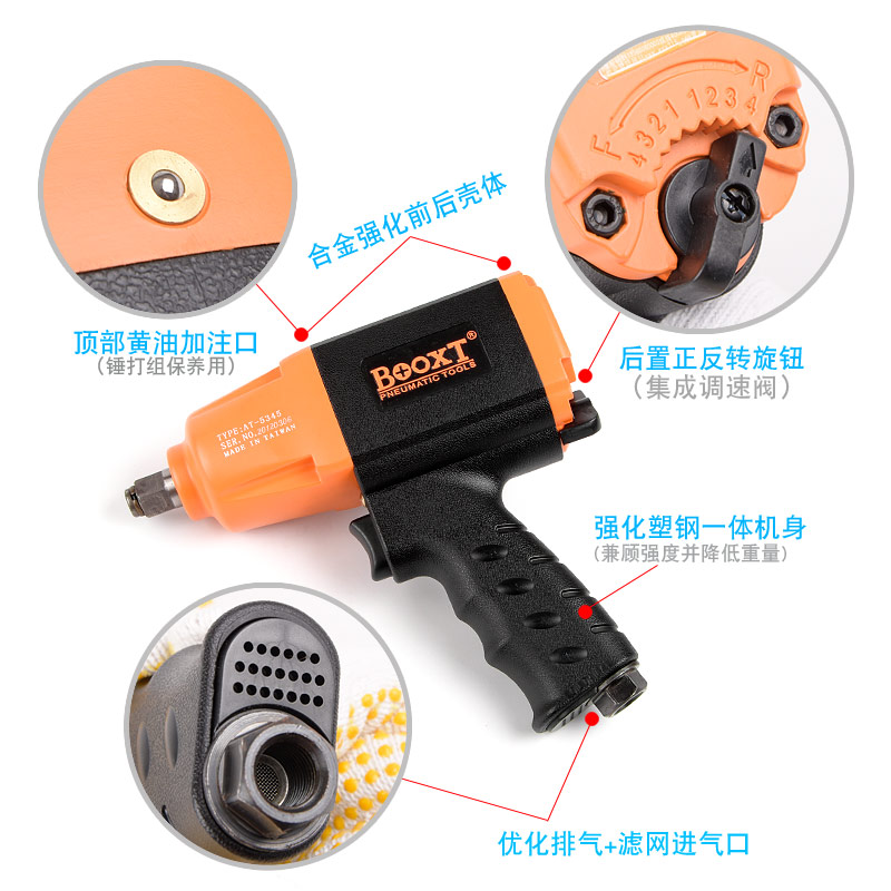 氣扳手特點(diǎn):(重力壓鑄外殼,強(qiáng)度更高不變形,提高耐用度)