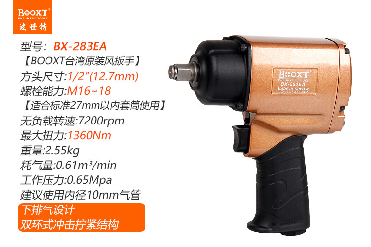 東莞市強勁五金工具有限公司提供臺灣BOOXT波世特品牌氣動工具,風(fēng)動扳手BX-283EA廠家直銷,首件享特價。咨詢熱線:4008301980