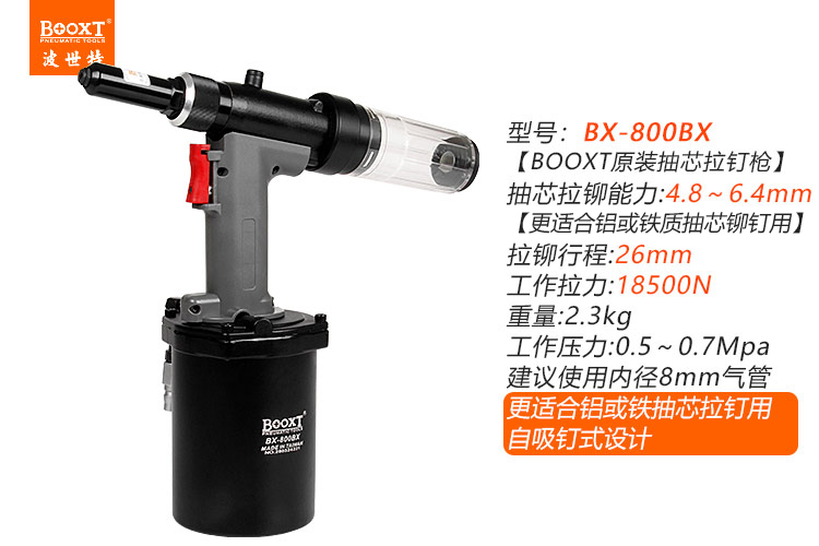 東莞市強(qiáng)勁五金工具有限公司提供臺(tái)灣BOOXT波世特品牌氣動(dòng)工具,自吸式氣動(dòng)拉釘槍BX-800BX廠家直銷(xiāo),首件享特價(jià)。咨詢熱線:4008301980