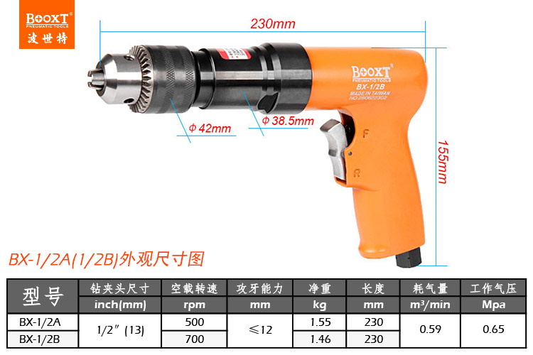 東莞市強勁五金工具有限公司提供臺灣BOOXT波世特品牌氣動工具,氣鉆BX-1/2A廠家直銷,首件享特價。咨詢熱線:4008301980